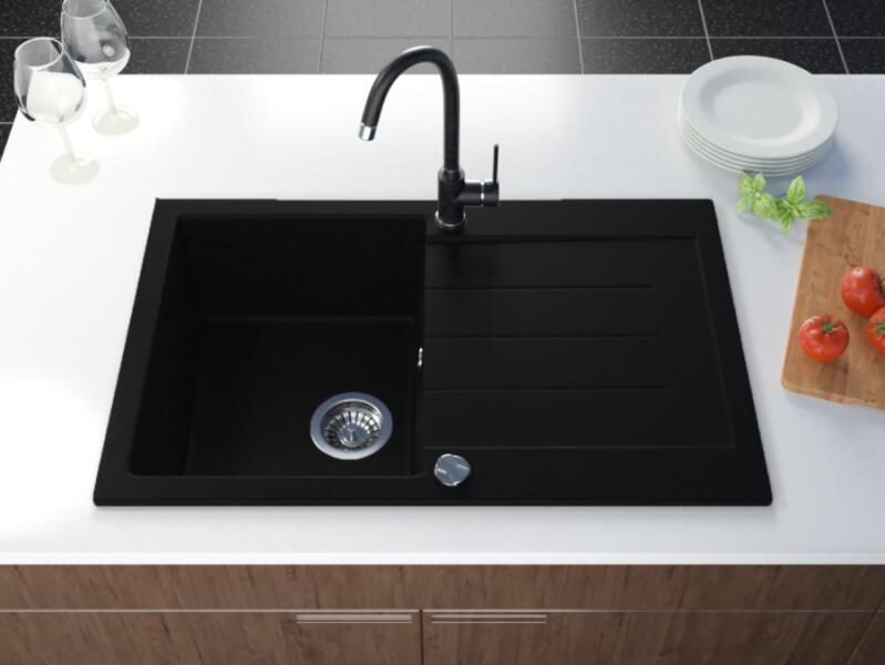Tomas konyhai mosogató: Gyártó: Mexen Sorozat: Tomas Modell: 2-kamrás csepptálca nélkül Beépítés: felülről a munkalapba süllyesztve Hossz: 800 mm Szélesség: 500 mm Magasság: 190 mm Kamra mélysége: 180 mm (nagyobb), 180 mm (kisebb) Kamra mérete: 440x387 mm (nagyobb), 370x303 mm (kisebb) A lefolyó átmérője: Ø 90 mm Szifon + automatikus leeresztő csavar Anyaga: gránit (80% g