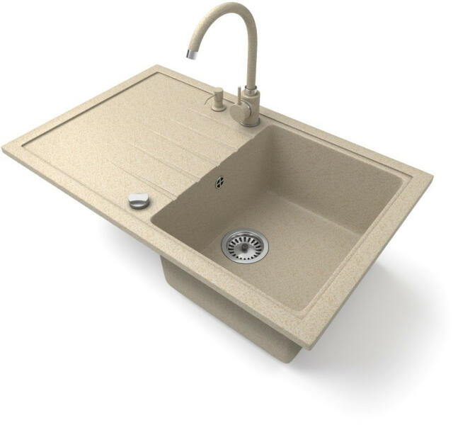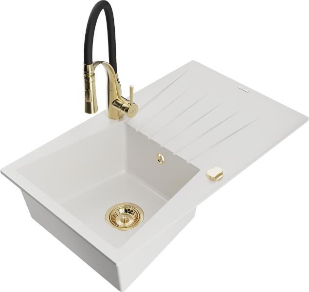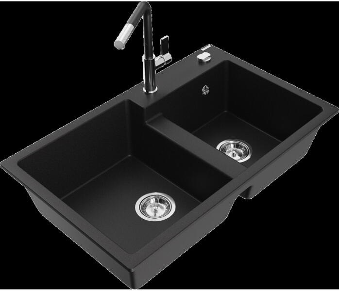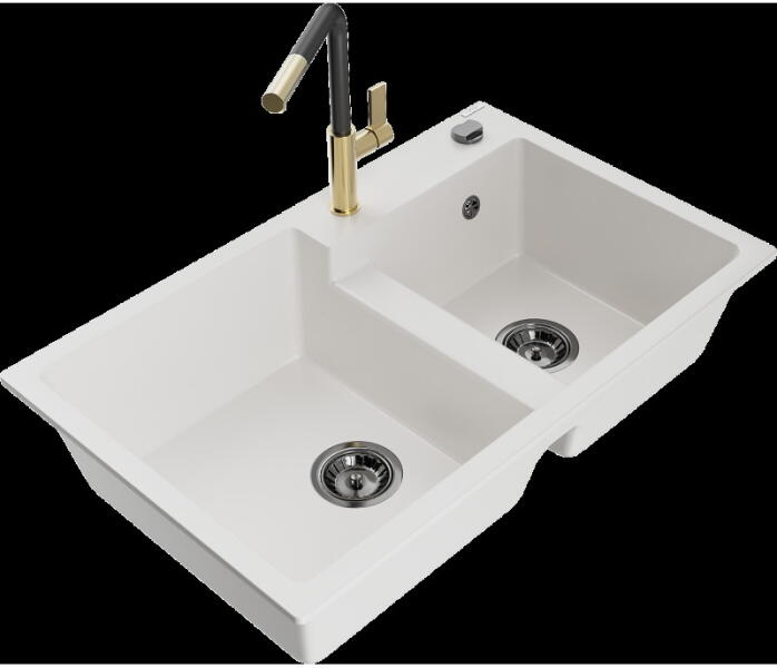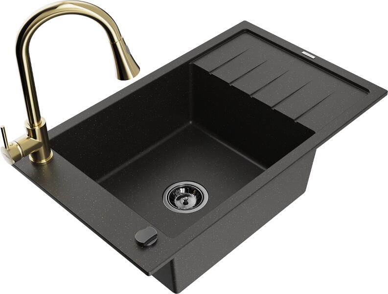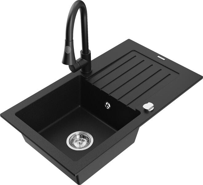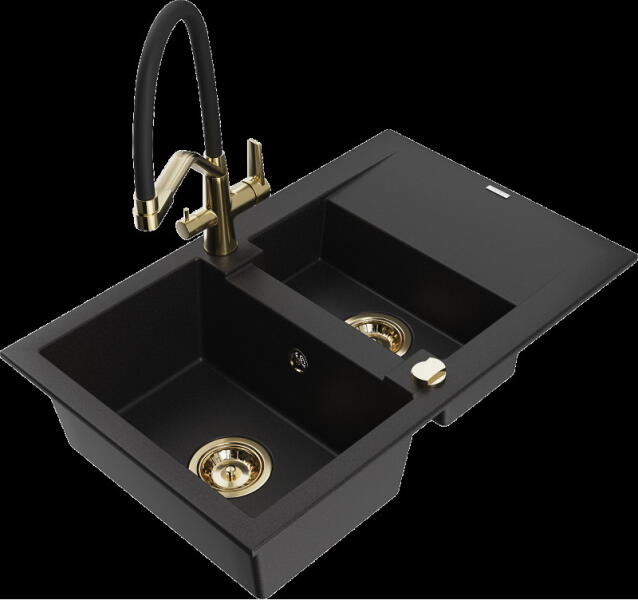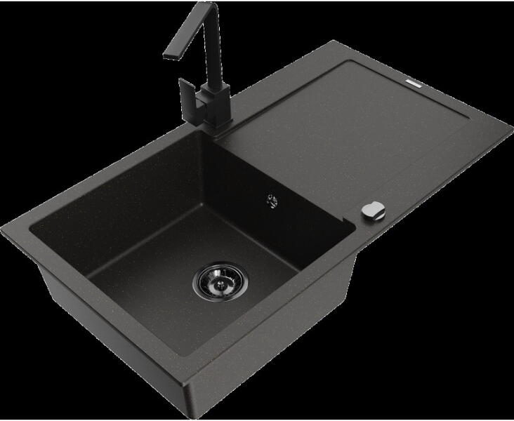 Mexen Elias konyhai mosogató: Gyártó: Mexen Sorozat: Elias Modell: 1 kamrás Beépítés: felülről a munkalapba süllyesztve Méretek: 795x480x200 mm Kamra mélysége: 190 mm Kamra mérete: 465x420 mm Lefolyó átmérője: 90 mm Szifon + automatikus leeresztő csavar Anyaga: gránit (80% gránit - kő, 20% gyanta) Sima felület a könnyű tisztítás érdekében: igen Megnövelt ellenállás