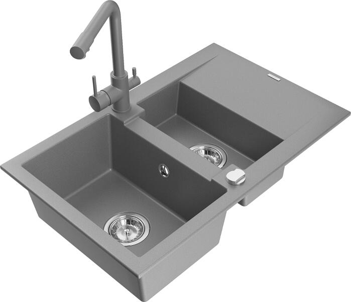 Mexen Gaspar, gránit mosogató 737x475x177 mm, 1,5 kamrás, szürke csaptelep Duero, szürke, 6507-71-671600-71 Gyártó: Mexen Sorozat: Gáspár Modell: 1,5-kamrás, rövid leeresztővel Felszerelés: munkalapra Szín: szürke Hossza 737 mm Szélesség 475 mm Magasság: 177 mm Kamra mélysége: 167 mm (nagyobb), 107 mm (kisebb) Kamra mérete: 395x272 mm (nagyobb), 375x182 mm (kisebb) Lefolyó á
