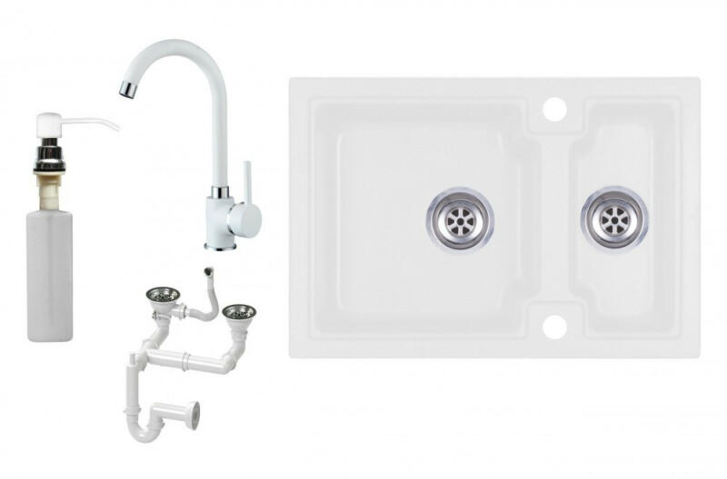 Boston S63-43BI gránit mosogató szett fehér színben. Teljes készlet, ami tartalmazza a szifont, mosogatószer adagolót és a csaptelepet. Méreténél fogva ideális lehet olyan konyhákba, ahol az okos helykihasználás és a helytakarékosság alapvető követelmény, viszont szükséges a másfél medencés kialakítás. A fehér gránit mosogatótálcák színe enyhén eltér a csaptelep