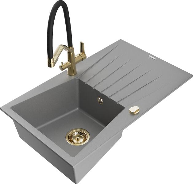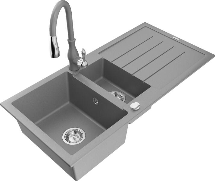 Matias konyhai mosogató: Gyártó: Mexen Sorozat: Matias Modell: 1,5-kamrás lefolyóval Beépítés: felülről a munkalapba való beágyazáshoz Hossz: 900 mm Szélesség: 505 mm Magasság: 200 mm Kamra mélysége: 180 mm (nagyobb), 115 mm (kisebb) Kamra mérete: 435x335 mm (nagyobb), 345x150 mm (kisebb) Lefolyó átmérője: 90 mm Szifon + automatikus leeresztő csavar Anyaga: gránit (80% gr