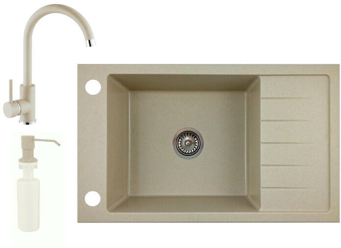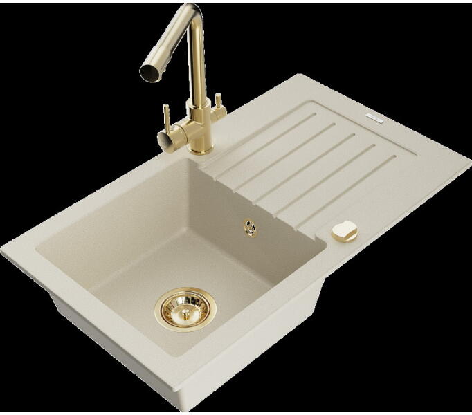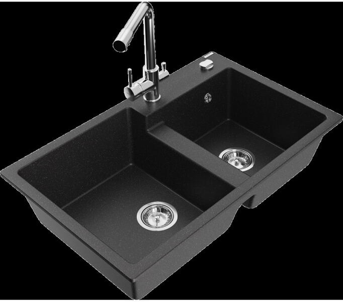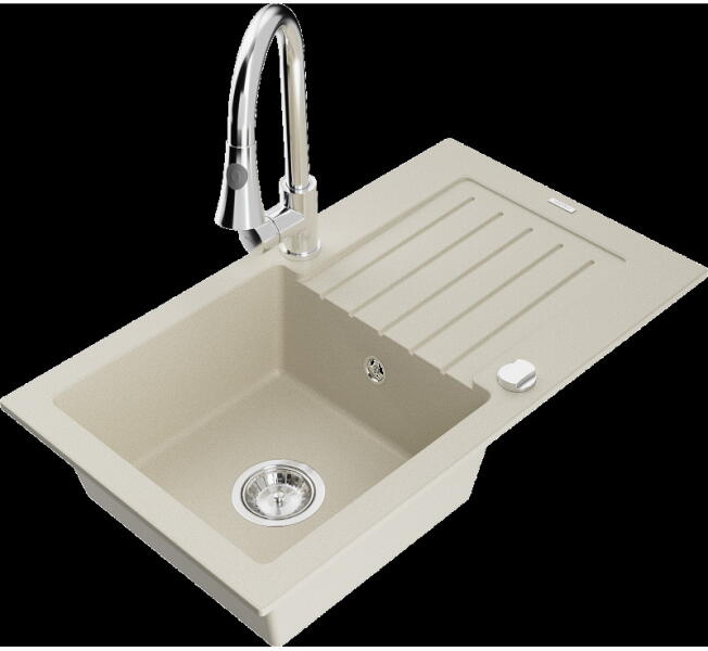 Gyártó: Mexen Sorozat: Bruno + Savita Mosogató: Mérete: 795x495x200 mm Kamra - mélység: 200 mm Kamra méretei: 440x360 mm Kimeneti átmérő: ø90 mm Típus: 1 kamrás csepegtetővel Mosogató típusa: a munkalapba való beágyazáshoz Anyaga: gránit (80% gránit adalékanyag 20% gyanta) Túlfolyó nyílás: Igen Lyukak: 2 (1 lyuk a mosogató csapjához, 1 lyuk az automatikus leeresztő csa