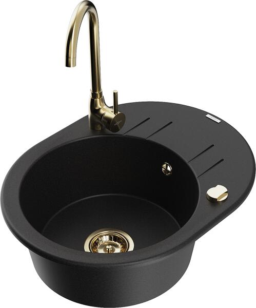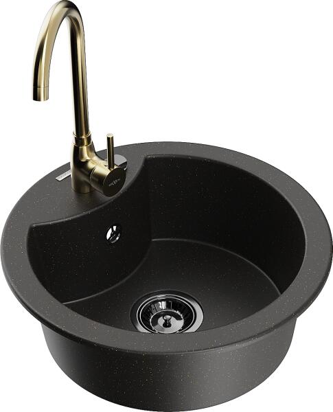 Mexen Kevin, gránit mosogató 586x458x190 mm, 1 kamrás és arany Telma csaptelep, fekete foltos, 6517-77-670200-50 Gyártó: Mexen Sorozat: Kevin Modell: 1 kamrás, rövid leeresztővel Felszerelés: munkalapra Hossza 586 mm Szélesség 458 mm Magasság: 190 mm Kamra mérete: 378x374 mm Kamra mélysége: 175 mm A lefolyó átmérője: Ø 90 mm Szifon + automatikus leeresztő csavar Anyaga: grán