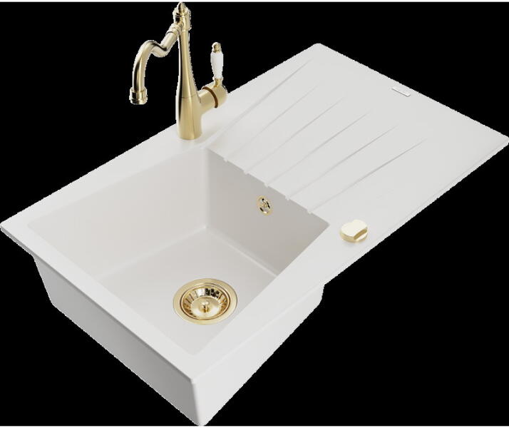 Milo konyhai mosogató: Gyártó: Mexen Méretek: 435x410x171 mm Kamra mélysége: 161 mm Kamra méretei: 375x280 mm Lefolyó átmérője: ø90 mm Típus: 1 kamrás Beépítés: felülről a pultba süllyesztve Anyaga: gránit (80% gránit adalékanyag 20% gyanta) Túlfolyó lyuk: igen Lyukak: 2 (1 x akkumulátor, 1 x automatikus leeresztő csavar vezérlés) Nagy ellenállás a karcolásokk