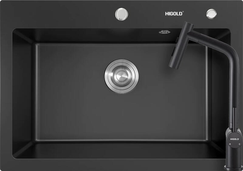 Higold 935004B konyhai mosogatótálca 680 x 480 mm, gránit kompozit, hagyományos beépítés, fekete. A kvarc mosogatókról való minden elképzelésnek eleget tesz. Jól néz ki. Minél többet használod, annál újabb. Hőálló és karcolásálló. Könnyen tisztítható. Egy törlés és az olajos, zsíros foltok is eltűnnek. Nagyon kevés ennyire sima és finom felületű kvarcból kés