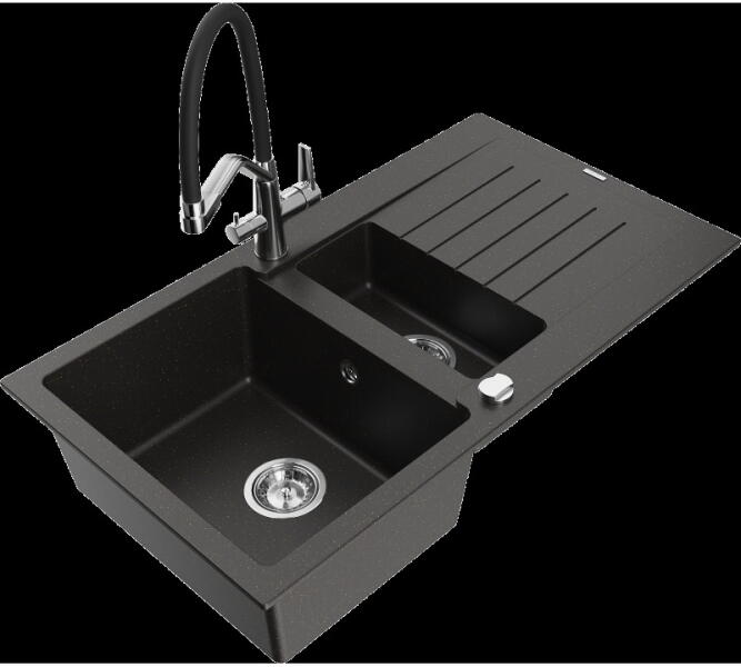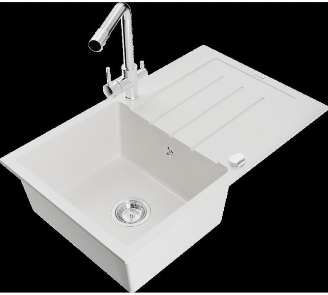 Mexen Enzo konyhai mosogató: Gyártó: Mexen Sorozat: Enzo Modell: 1 kamrás Beépítés: felülről a munkalapba süllyesztve Méretek: 576x465x174 mm Kamra mélysége: 164 mm Kamra mérete: 395x320 mm Lefolyó átmérője: 90 mm Szifon + automatikus leeresztő csavar Anyaga: gránit (80% gránit - kő, 20% gyanta) Sima felület a könnyű tisztítás érdekében: igen Megnövelt ellenállás az