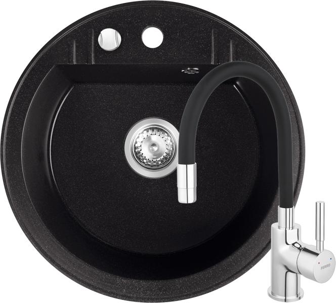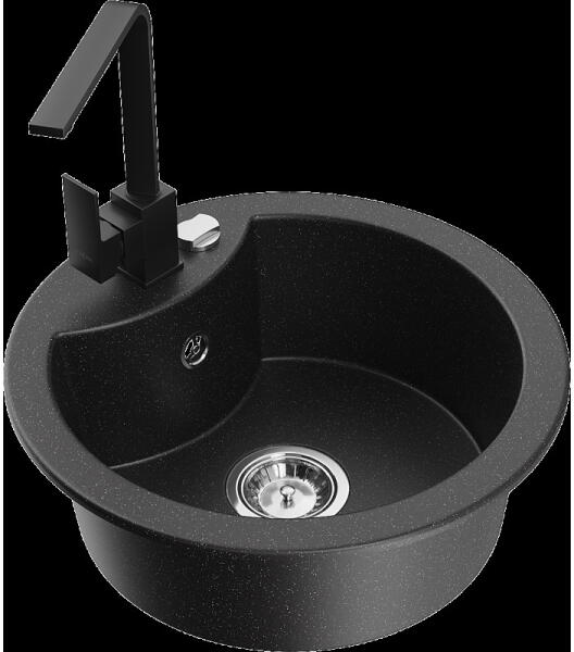 Ferro Mezzo II Grafit Gránit Mosogató 1 Kerek Medencés 510 x 510 mm Lefolyó Távműködtetővel - kerek alakú, egymedencés, csepegtető nélküli mosogató, munkalapba beépíthető. Különleges formája nagy teret ad a csaptelepnek és a lefolyó nyitógombjának. A Ferro gránit mosogatók kiválóan kapcsolják össze az esztétikai hatást az eredményes funkcionalitással, ezért mosog