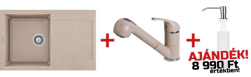 ELLECI - EASY1 szett Elleci akciós szett ajánlat: mosogatótálca+csaptelep ajándék mosogatószer-adagolóval. A SZETT TARTALMA Elleci Easy 300 G51 Avena mosogatótálca 1 medencés mosogatótálca csepegtetővel, munkalapra szerelhető, anyaga: granitek, színe: G51 avena, mosogatótálca mérete: 790x500 mm, medence mélysége: 220 mm, tartozékok: helytakarékos szifon, szűrőkosár, rögz