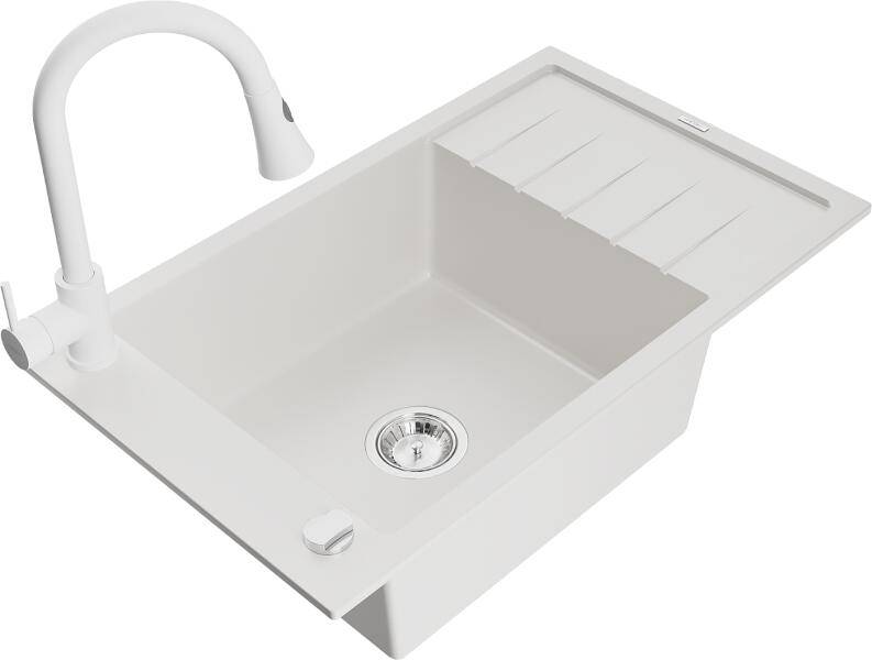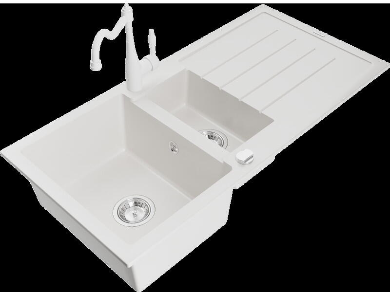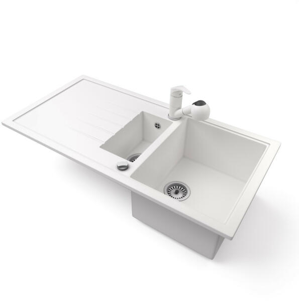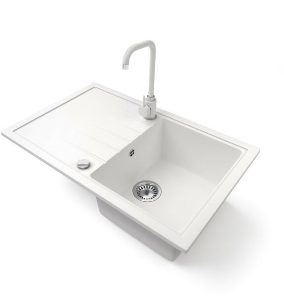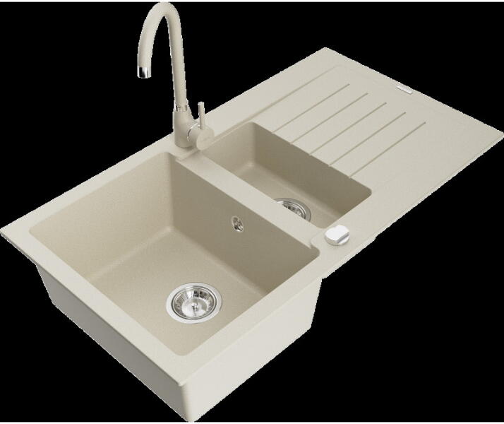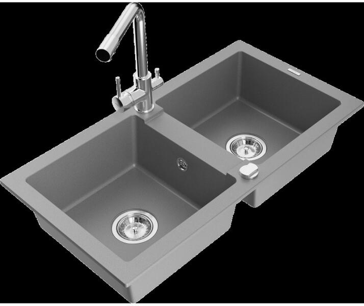 Mexen Elias konyhai mosogató: Gyártó: Mexen Sorozat: Elias Modell: 1 kamrás Beépítés: felülről a munkalapba süllyesztve Méretek: 795x480x200 mm Kamra mélysége: 190 mm Kamra mérete: 465x420 mm Lefolyó átmérője: 90 mm Szifon + automatikus leeresztő csavar Anyaga: gránit (80% gránit - kő, 20% gyanta) Sima felület a könnyű tisztítás érdekében: igen Megnövelt ellenállás