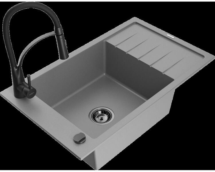 Mexen Pablo konyhai mosogató: Gyártó: Mexen Sorozat: Pablo Modell: 1 kamrás Beépítés: felülről a munkalapba süllyesztve Méretek: 752x436x161 mm Kamra mélysége: 151 mm Kamra mérete: 356x332 mm Lefolyó átmérője: 90 mm Szifon + automatikus leeresztő csavar Anyaga: gránit (80% gránit - kő, 20% gyanta) Sima felület a könnyű tisztítás érdekében: igen Megnövelt ellenállás