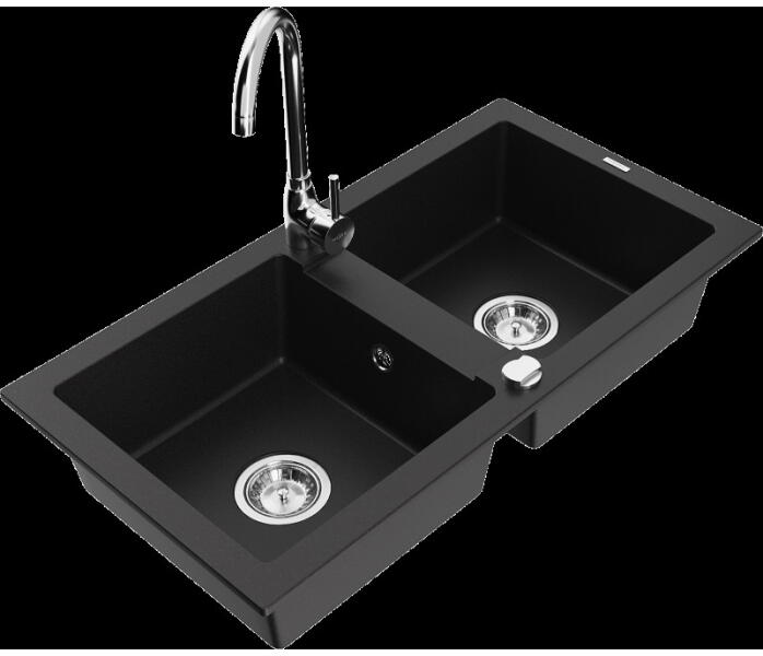 Gyártó: Mexen Sorozat: Mario + Savita Mosogató: Méretek: 820x436x161 mm Kamra - mélység: 151 mm Kamra méretei: 356x336 mm Kimeneti átmérő: ø90 mm Típus: 2 kamrás Mosogató típusa: a munkalapba való beágyazáshoz Anyaga: gránit (80% gránit adalékanyag 20% gyanta) Túlfolyó nyílás: Igen Lyukak: (1 lyuk a mosogató csaptelepéhez, 1 lyuk az automatikus leeresztő csavar szabály