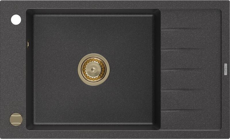 Mexen Elias, gránit mosogató gránit 795x480x200 mm, 1 kamrás, fekete foltos arany szifonnal, 6511791005-76-G Gyártó: Mexen Sorozat: Elias Modell: 1 kamrás, rövid leeresztővel Felszerelés: munkalapra Szín: fekete foltos Felület: sima Hossza 795 mm Szélesség 480 mm Magasság: 200 mm Kamra mélysége: 190 mm Kamra mérete: 465x420 mm Lefolyó átmérője: 90 mm Szifon + automatikus lee