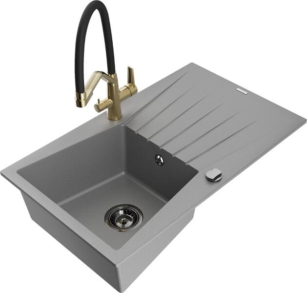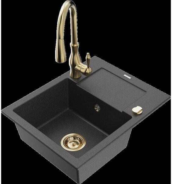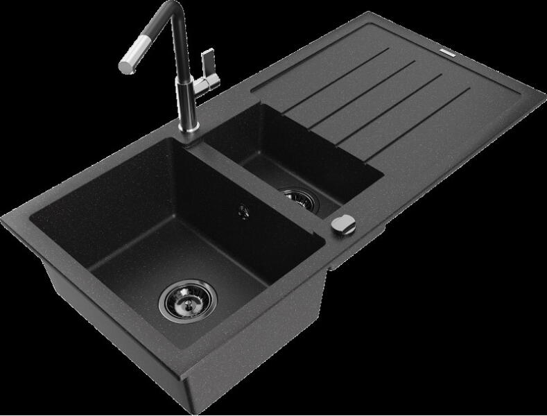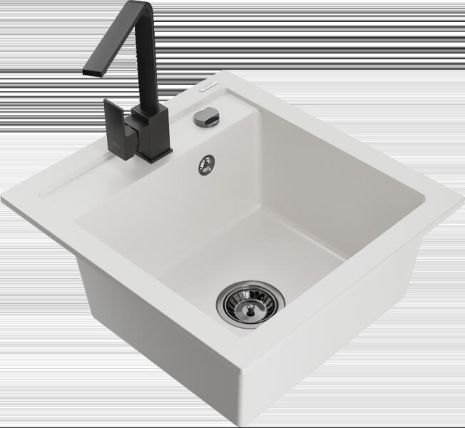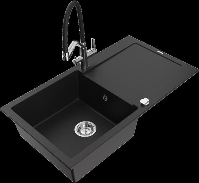 Mexen Bruno konyhai mosogató: Gyártó: Mexen Sorozat: Bruno Modell: 1 kamrás Beépítés: felülről a munkalapba süllyesztve Méretek: 795x495x200 mm Kamra mélysége: 190 mm Kamra mérete: 440x360 mm Lefolyó átmérője: 90 mm Szifon + automatikus leeresztő csavar Anyaga: gránit (80% gránit - kő, 20% gyanta) Sima felület a könnyű tisztítás érdekében: igen Megnövelt ellenállás
