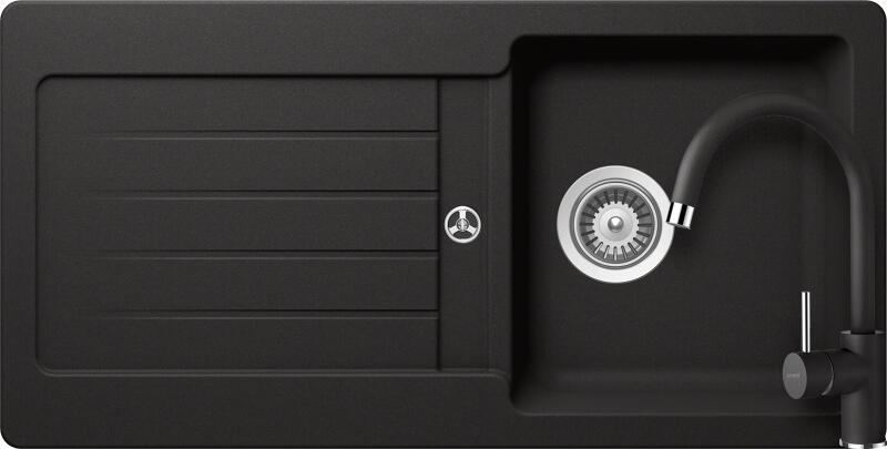 Schock Typos D-100S konyhai mosogatótálca Cristalite Nero 860 x 435 mm, gránit, megfordítható, hagyományos beépítés, fekete munkalapba beépíthető, egymedencés, megfordítható, csepegtetővel ellátott, ideálisan illeszkedik a minimum 45 cm-es alsószekrényhez. A csaptelep helye előre elkészített, könnyedén áttörhető. A csomagban találja a használati útmutatót, amely ré