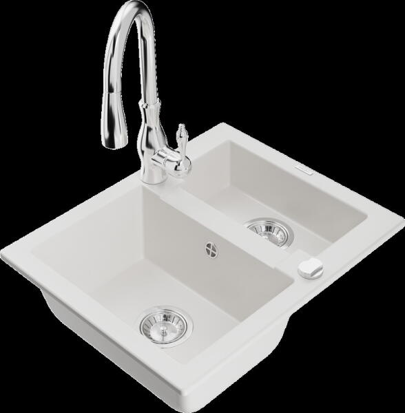 Gyártó: Mexen Sorozat: Cesar + Duo Mosogató: Gyártó: Mexen Sorozat: Cesar Méretek: 775x470x200 mm Kamra méretei: 410x355 mm Kamra mélysége: 180 mm Lefolyó átmérője: ø90 mm Típus: 1 kamrás lefolyóval Mosogató típusa: a munkalapba való beágyazáshoz Anyaga: gránit (80% gránit adalékanyag 20% gyanta) Túlfolyó nyílás: Igen Lyukak: 2 (1 lyuk a mosogató csaptelepéhez,
