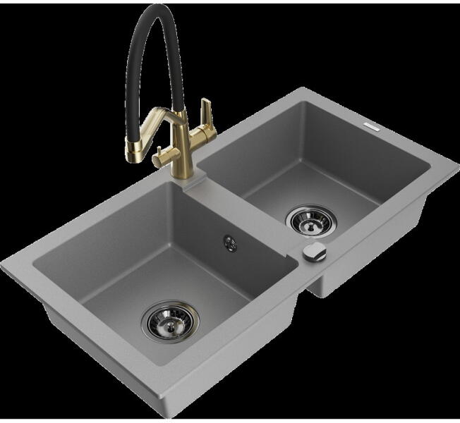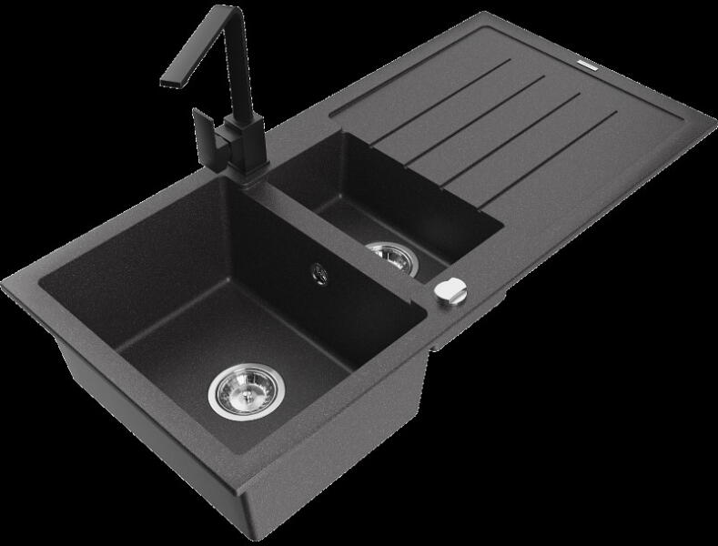 Mexen Bruno konyhai mosogató: Gyártó: Mexen Sorozat: Bruno Modell: 1 kamrás Beépítés: felülről a munkalapba süllyesztve Méretek: 795x495x200 mm Kamra mélysége: 190 mm Kamra mérete: 440x360 mm Lefolyó átmérője: 90 mm Szifon + automatikus leeresztő csavar Anyaga: gránit (80% gránit - kő, 20% gyanta) Sima felület a könnyű tisztítás érdekében: igen Megnövelt ellenállás