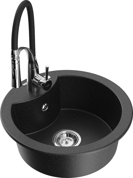 Mexen Diego konyhai mosogató: Gyártó: Mexen Sorozat: Diego Modell: 1 kamrás Beépítés: felülről a munkalapba süllyesztve Méretek: 488x488x167 mm Kamra mélysége: 157 mm Kamra átmérője: 406 mm Lefolyó átmérője: 90 mm Szifon + automatikus leeresztő csavar Anyaga: gránit (80% gránit - kő, 20% gyanta) Sima felület a könnyű tisztítás érdekében: igen Megnövelt ellenállás