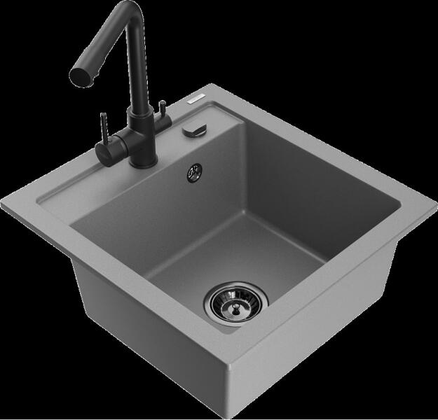 Mexen Elias konyhai mosogató: Gyártó: Mexen Sorozat: Elias Modell: 1 kamrás Beépítés: felülről a munkalapba süllyesztve Méretek: 795x480x200 mm Kamra mélysége: 190 mm Kamra mérete: 465x420 mm Lefolyó átmérője: 90 mm Szifon + automatikus leeresztő csavar Anyaga: gránit (80% gránit - kő, 20% gyanta) Sima felület a könnyű tisztítás érdekében: igen Megnövelt ellenállás