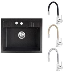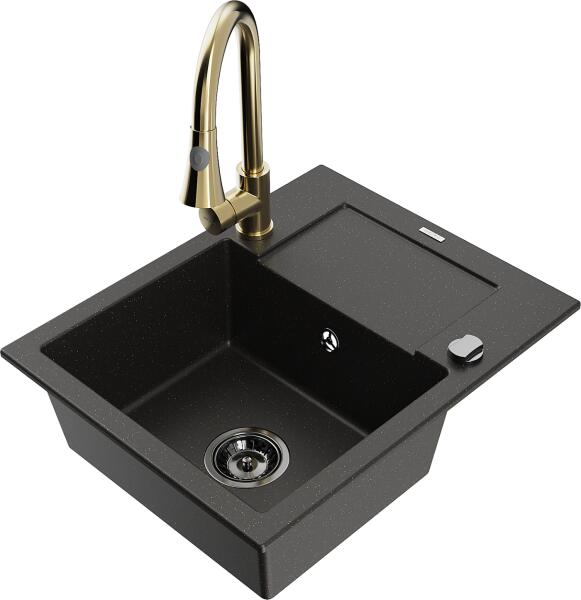 Mexen Gaspar, gránit mosogató 752x436x161 mm, 1,5 kamrás és mosogató csaptelep Carla, fekete, 6507-77-670700-50-B Gyártó: Mexen Sorozat: Gáspár Modell: 1,5-kamrás, rövid leeresztővel Beépítés: felülről a munkalapba való beágyazáshoz Fekete szín Hossza 737 mm Szélesség 475 mm Magasság: 177 mm Kamra mélysége: 167 mm (nagyobb), 107 mm (kisebb) Kamra mérete: 395x272 mm (nagy