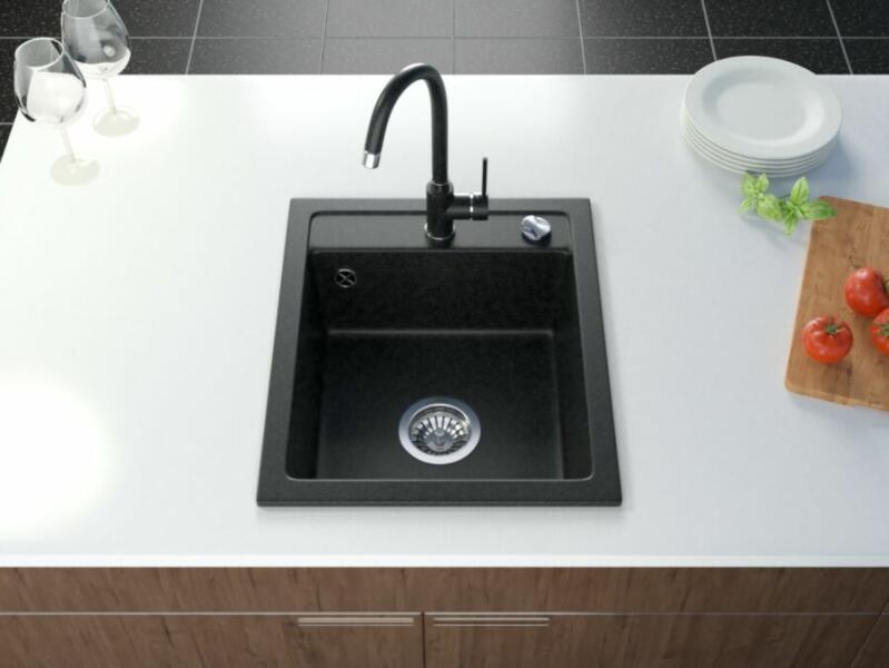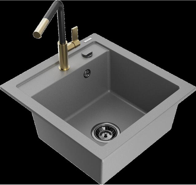 Mexen Milo konyhai mosogató: Gyártó: Mexen Sorozat: Milo Modell: 1 kamrás Beépítés: felülről a munkalapba süllyesztve Hossza 435 mm Szélesség 410 mm Magasság: 171 mm Kamra mélysége: 161 mm Kamra mérete: 375x280 mm Lefolyó átmérője: 90 mm Szifon + automatikus leeresztő csavar Anyaga: gránit (80% gránit - kő, 20% gyanta) Sima felület a könnyű tisztítás érdekében: igen