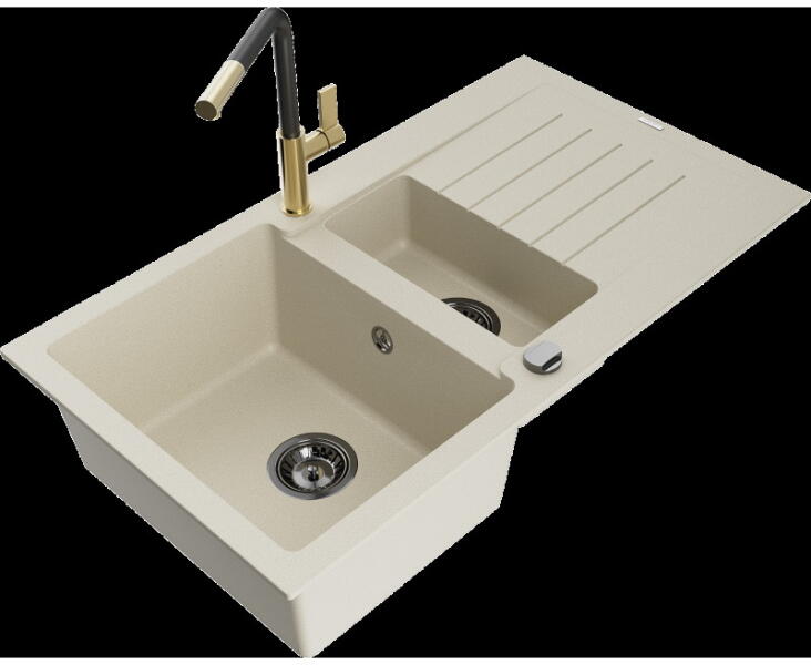 Tomas konyhai mosogató: Gyártó: Mexen Sorozat: Tomas Modell: 2-kamrás csepptálca nélkül Beépítés: felülről a munkalapba süllyesztve Hossz: 800 mm Szélesség: 500 mm Magasság: 190 mm Kamra mélysége: 180 mm (nagyobb), 180 mm (kisebb) Kamra mérete: 440x387 mm (nagyobb), 370x303 mm (kisebb) A lefolyó átmérője: Ø 90 mm Szifon + automatikus leeresztő csavar Anyaga: gránit (80% g