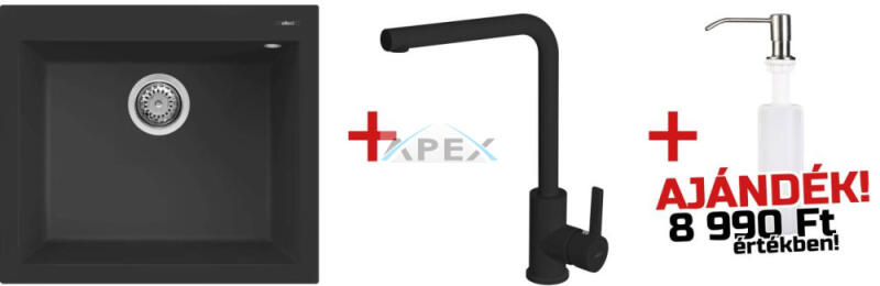 Elleci akciós szett ajánlat: mosogatótálca+csaptelep ajándék mosogatószer-adagolóval. A SZETT TARTALMA Elleci Quadra 105 G40 mosogatótálca 1 medencés mosogatótálca, munkalapra szerelhető, anyaga: granitek, színe: G40 nero, mosogatótálca mérete: 570x500 mm, medence mélysége: 200 mm, tartozékok: helytakarékos szifon, szűrőkosár, rögzítő fülek, elleci túlfolyó Elleci Sh