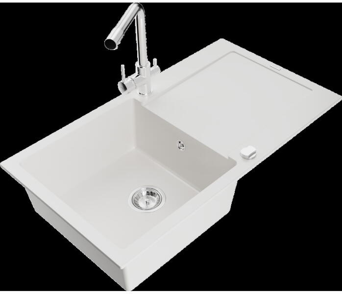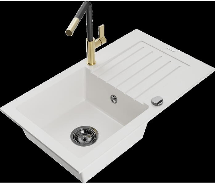 Mexen Bruno konyhai mosogató: Gyártó: Mexen Sorozat: Bruno Modell: 1 kamrás Beépítés: felülről a munkalapba süllyesztve Méretek: 795x495x200 mm Kamra mélysége: 190 mm Kamra mérete: 440x360 mm Lefolyó átmérője: 90 mm Szifon + automatikus leeresztő csavar Anyaga: gránit (80% gránit - kő, 20% gyanta) Sima felület a könnyű tisztítás érdekében: igen Megnövelt ellenállás