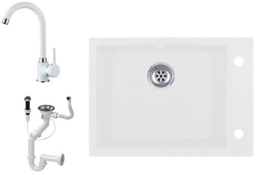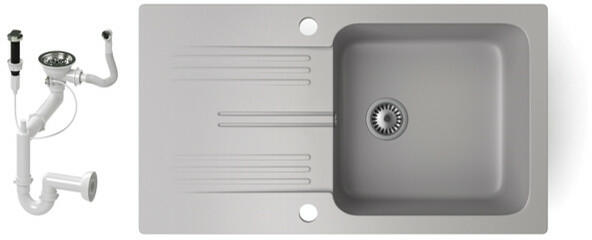 Evinion gránit mosogató szett fehér színben, extra nagy medencével. A medence mérete 48.5 x 38.5 cm, amiben szinte bármilyen méretű edény elfér. Modern megjelenésű, letisztult szögletes formavilág jellemzi, kiváló eleme lehet egy minimál vagy modern stílusú konyhának. A csapnak kialakított lyuk oldalt helyezkedik el, ami mellett kényelmesen elhelyeztehő egy mosogatószer ad