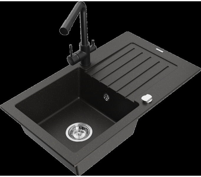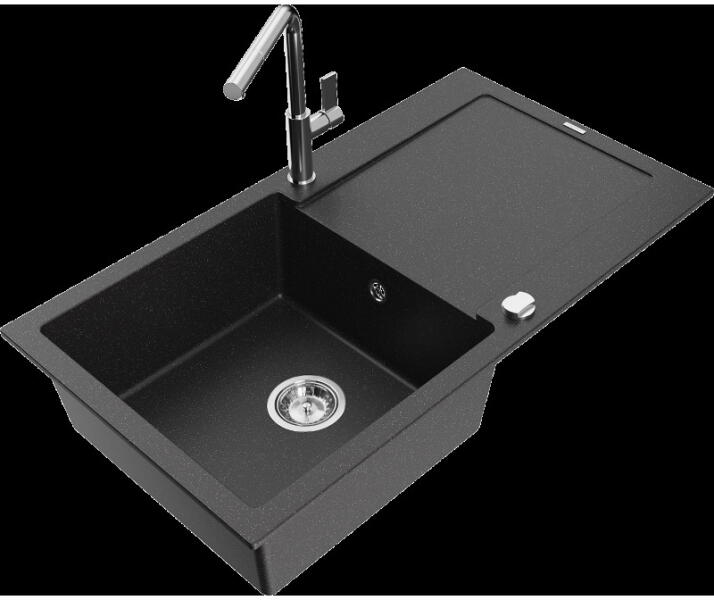 NERO Malta gránit mosogató, ami egyesíti a praktikus megoldást a bőséges helykínálattal és a harmonikus designnal. Méretes, 36 x 38 cm-es, medencével és kellően nagy csepegtető résszel rendelkezik, arányosan kialakítva. Minden igényt kielégít ami egy mosogatótól elvárható, amihez mindössze 78 cm hely szükséges. Egyenes és hajlított vonalvezetés harmonikus keveréke je