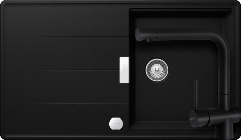 Schock Tia D-100 konyhai mosogatótálca Cristadur Puro 860 x 500 mm lefolyó távműködtetővel, gránit, megfordítható, hagyományos beépítés, intenzív feket– a prémium minőségű Tia D-100 mosogató aktívan besegít az élelmiszerek előkészítésében, amelyet 40 éves gyártói tapasztalat igazol. A kivitelezésben használt innovációs megoldások a vásárlók jövőbeni igén