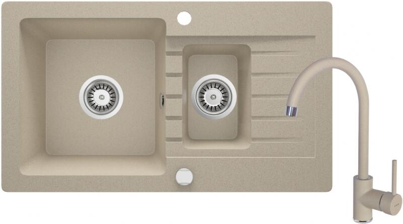 Mario konyhai mosogató: Méretek: 820x436x161 mm Kamra mélysége: 151 mm Kamra méretei: 356x336 mm Lefolyó átmérője: ø90 mm Típus: 2 kamrás Típus: felülről a munkalapba süllyesztve Anyaga: gránit (80% gránit adalékanyag 20% gyanta) Túlfolyó lyuk: igen Lyukak: 2 (1 x mosogató csaptelep, 1 x automatikus leeresztő csavar vezérlés) Nagy ellenállás a karcolásokkal és elszíne