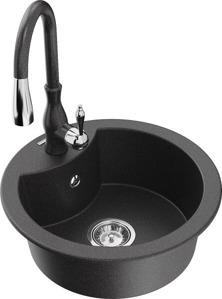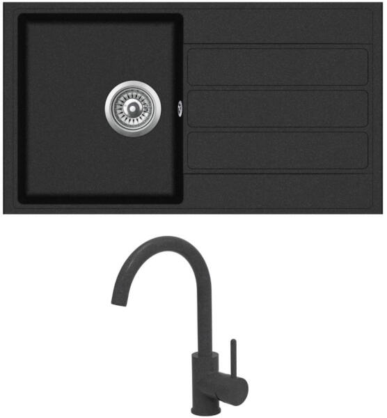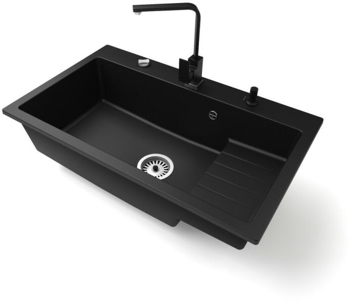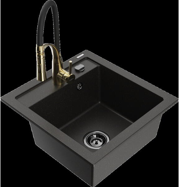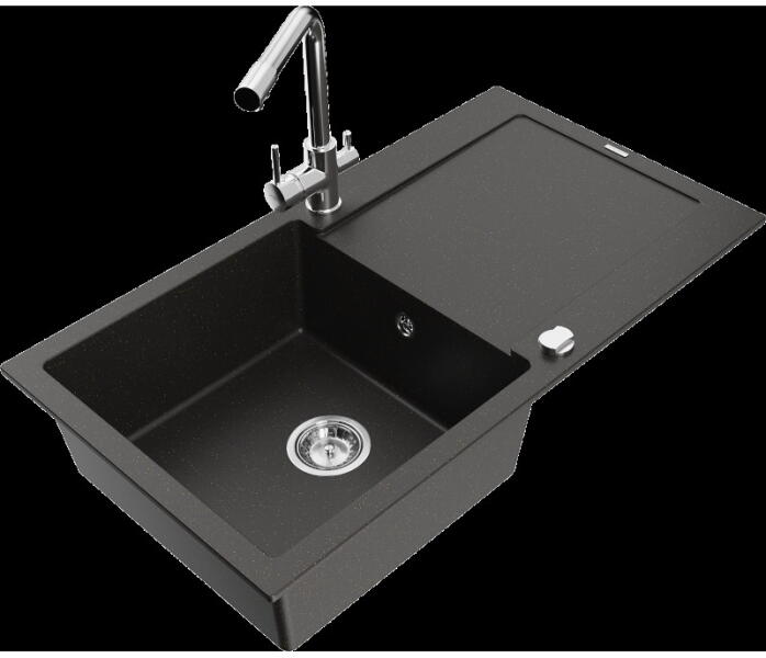 Mexen Enzo, gránit mosogató 576x465x174 mm, 1 kamrás, Duero króm csaptelep, fekete foltos, 6506-76-671600-00 Gyártó: Mexen Sorozat: Enzo Modell: 1 kamrás, rövid csepegtetővel Hossza 576 mm Szélesség 465 mm Magasság: 174 mm Szín: fekete foltos Kamra mélysége: 164 mm Kamra mérete: 395x320 mm Szifon + automatikus leeresztő csavar Anyaga: gránit (80% gránit - kő, 20% gyanta) Megnö