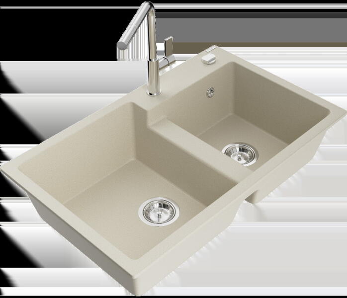 Gyártó: Mexen Sorozat: Bruno + Duo Mosogató: Mérete: 795x495x200 mm Kamra - mélység: 200 mm Kamra méretei: 440x360 mm Kimeneti átmérő: ø90 mm Típus: 1 kamrás csepegtetővel Mosogató típusa: a munkalapba való beágyazáshoz Anyaga: gránit (80% gránit adalékanyag 20% gyanta) Túlfolyó nyílás: Igen Lyukak: 2 (1 lyuk a mosogató csapjához, 1 lyuk az automatikus leeresztő
