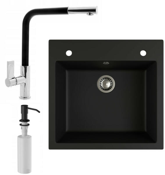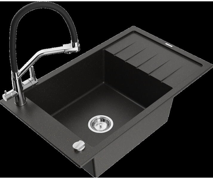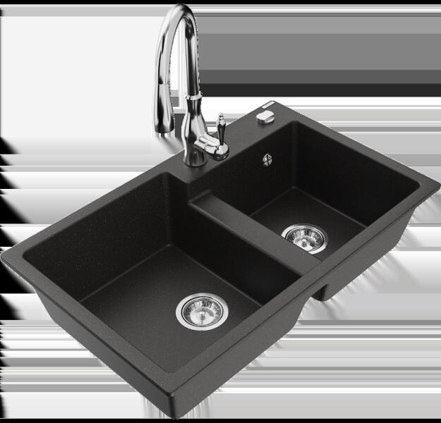 Mexen Gaspar, gránit mosogató 752x436x161 mm, 1,5 kamrás és mosogató csaptelep Carla, fekete foltos, 6507-76-670700-70-B Gyártó: Mexen Sorozat: Gáspár Modell: 1,5-kamrás, rövid leeresztővel Beépítés: felülről a munkalapba való beágyazáshoz Szín: fekete foltos Hossza 737 mm Szélesség 475 mm Magasság: 177 mm Kamra mélysége: 167 mm (nagyobb), 107 mm (kisebb) Kamra mérete: 3