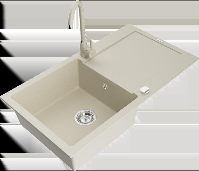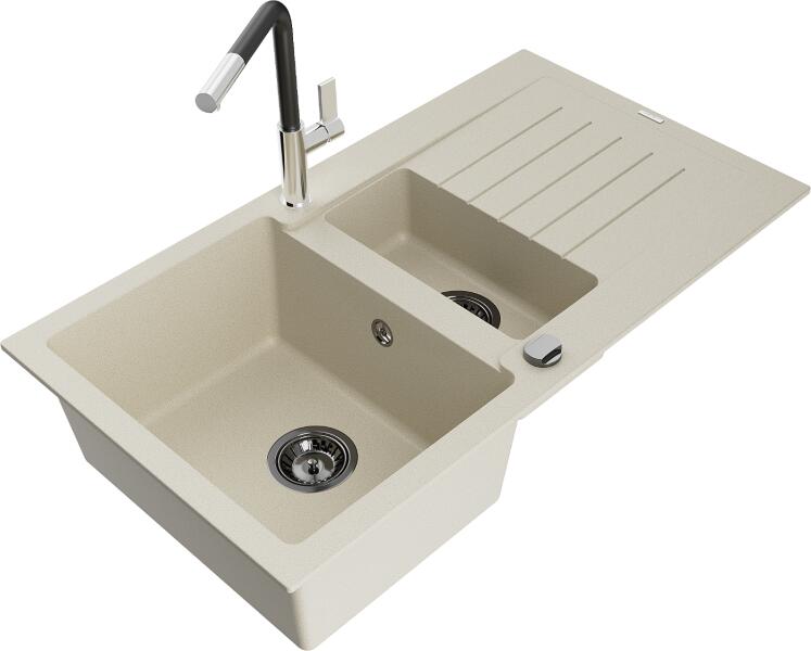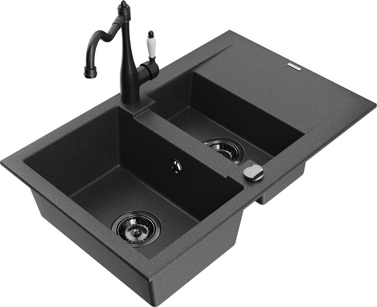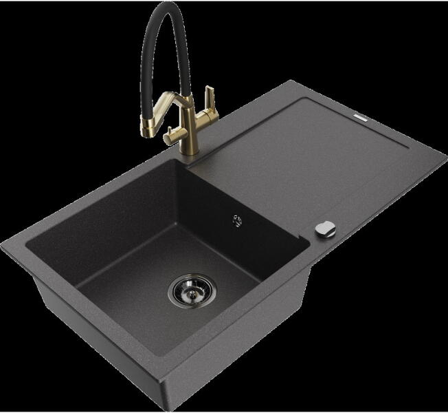 Matias konyhai mosogató: Gyártó: Mexen Sorozat: Matias Modell: 1,5-kamrás lefolyóval Beépítés: felülről a munkalapba való beágyazáshoz Hossz: 900 mm Szélesség: 505 mm Magasság: 200 mm Kamra mélysége: 180 mm (nagyobb), 115 mm (kisebb) Kamra mérete: 435x335 mm (nagyobb), 345x150 mm (kisebb) Lefolyó átmérője: 90 mm Szifon + automatikus leeresztő csavar Anyaga: gránit (80% gr