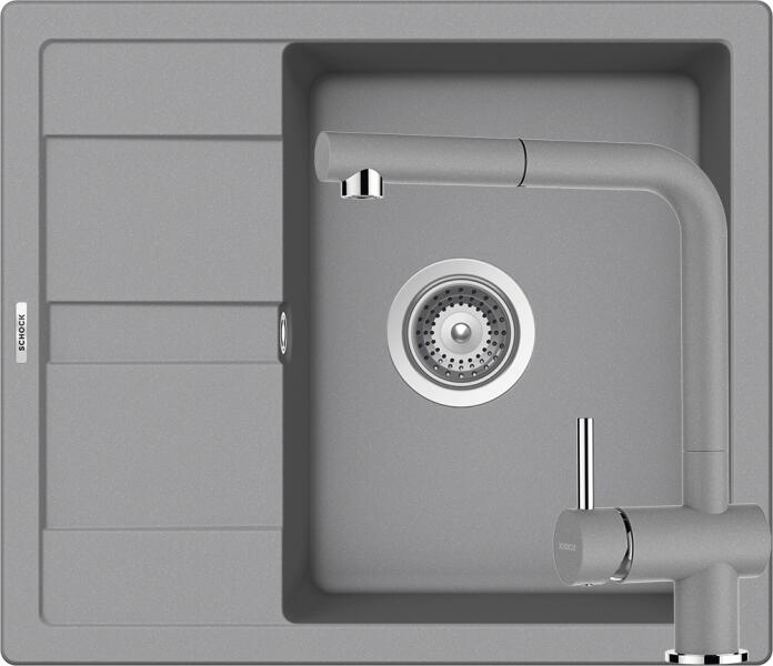 Schock Ronda D-100 Gránit Mosogató 580 x 500 mm Croma Cristalite munkalapba beépíthető, egymedencés, megfordítható, csepegtetővel ellátott, ideálisan illeszkedik a minimum 45 cm-es alsószekrényhez. A csaptelep helye előre elkészített, könnyedén áttörhető. A csomagban találja a használati útmutatót, amely részletes leírást ad a csaptelep helyének megfelelő módon tört