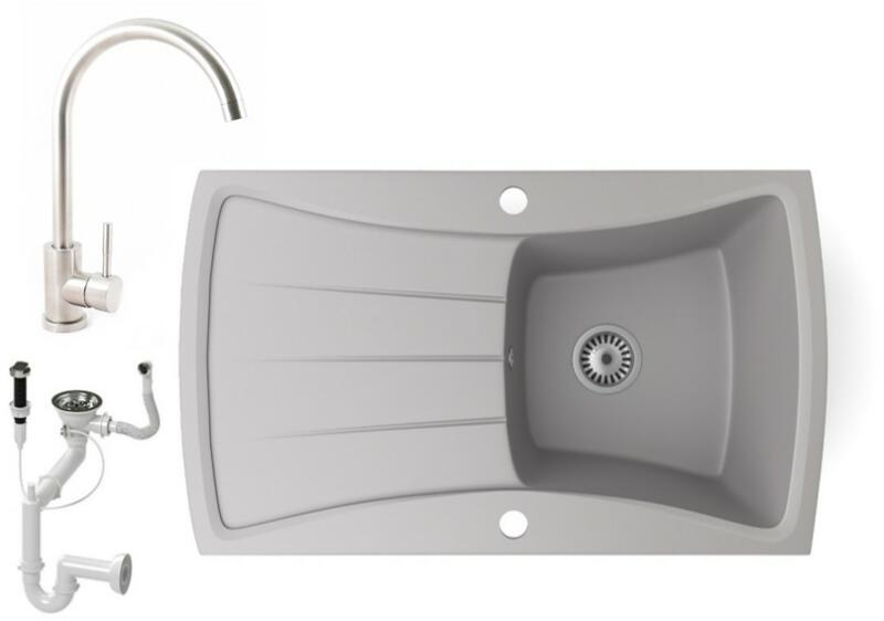 NERO Venezia gránit mosogató szürke színben. Egyedi és különleges formával tervezett egymedencés mosogató, kellően nagyméretű csepegtető résszel. A velencei gondolákat idéző, harmonikusan kialakított ívekkel a konyha esztétikus része, emellett anyagvastagságának köszönhetően rendkívül masszív konsktrukció. A mosogatón 2 lyuk található, egy a csaptelepnek és egy a