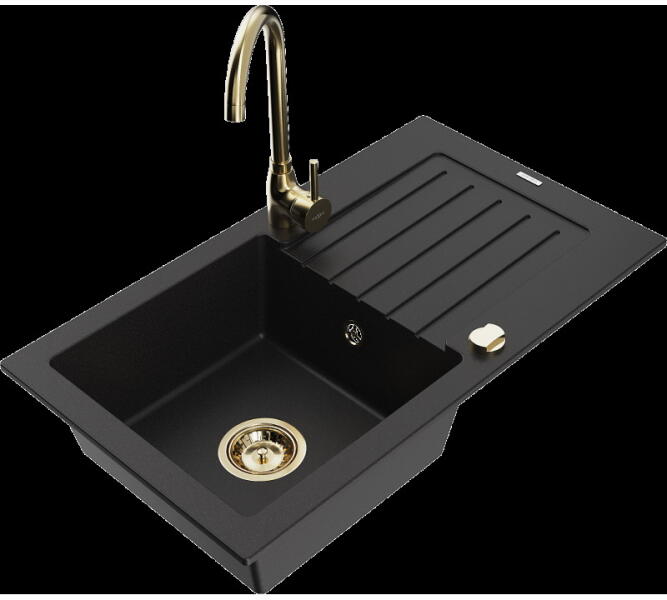 Mexen Milo konyhai mosogató: Gyártó: Mexen Sorozat: Milo Modell: 1 kamrás Beépítés: felülről a munkalapba süllyesztve Hossza 435 mm Szélesség 410 mm Magasság: 171 mm Kamra mélysége: 161 mm Kamra mérete: 375x280 mm Lefolyó átmérője: 90 mm Szifon + automatikus leeresztő csavar Anyaga: gránit (80% gránit - kő, 20% gyanta) Sima felület a könnyű tisztítás érdekében: igen