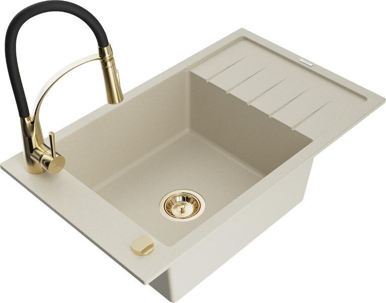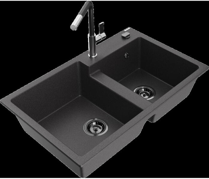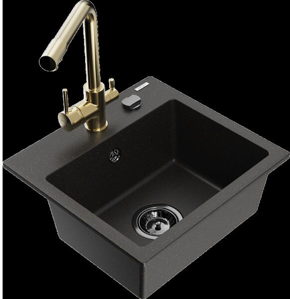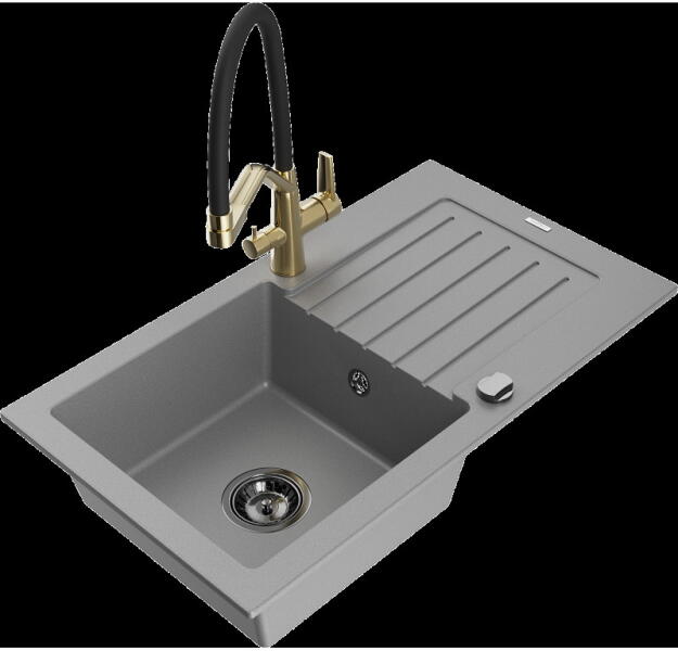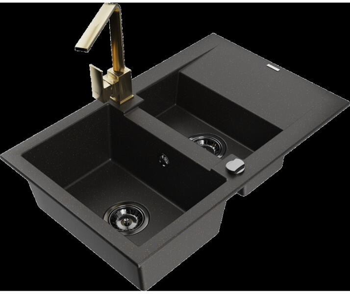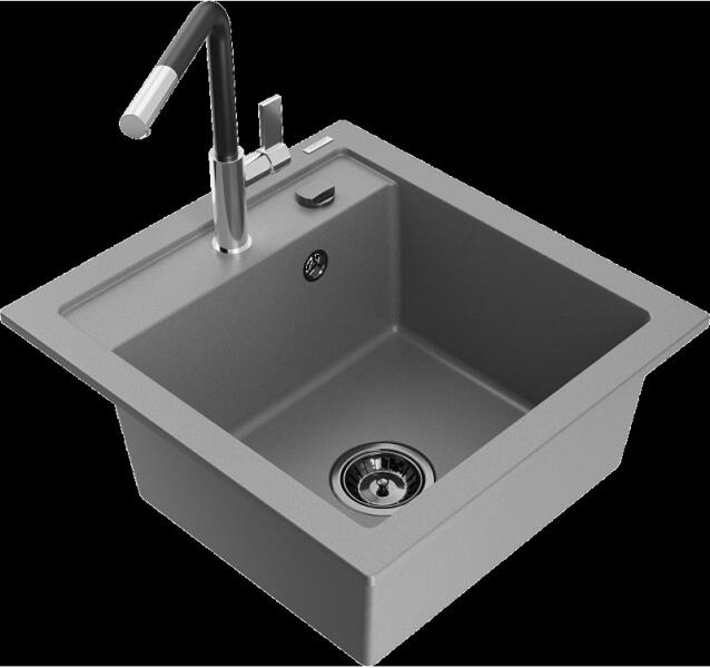 Mexen Elias konyhai mosogató: Gyártó: Mexen Sorozat: Elias Modell: 1 kamrás Beépítés: felülről a munkalapba süllyesztve Méretek: 795x480x200 mm Kamra mélysége: 190 mm Kamra mérete: 465x420 mm Lefolyó átmérője: 90 mm Szifon + automatikus leeresztő csavar Anyaga: gránit (80% gránit - kő, 20% gyanta) Sima felület a könnyű tisztítás érdekében: igen Megnövelt ellenállás
