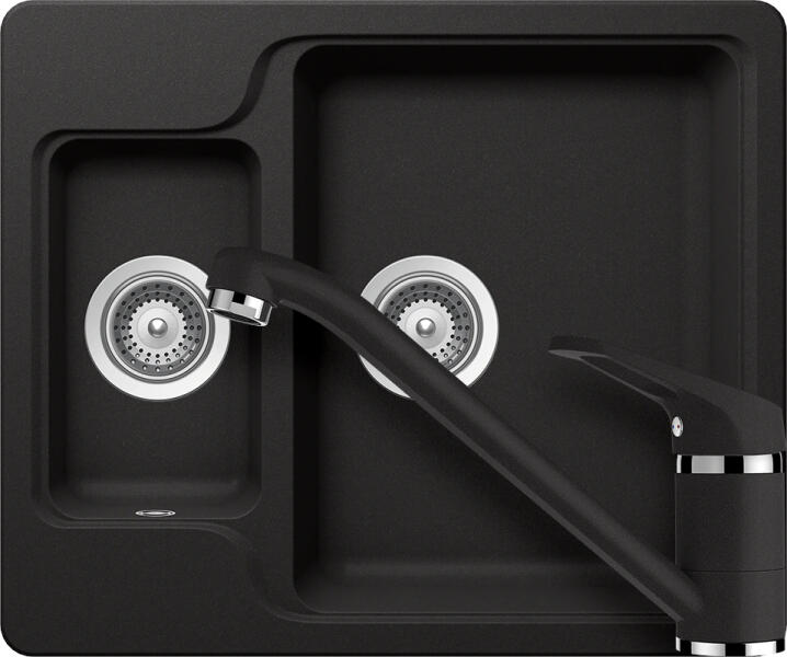 Schock Manhattan N-150 konyhai mosogatótálca Cristalite Nero 610 x 510 mm, gránit, megfordítható, hagyományos beépítés, fekete munkalapba beépíthető, egy + félmedencés, csepegtető nélküli, megfordítható, ideálisan illeszkedik a minimum 60 cm-es alsószekrényhez. A csaptelep helye előre elkészített, könnyedén áttörhető. A csomagban találja a használati útmutatót, am