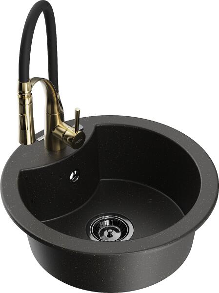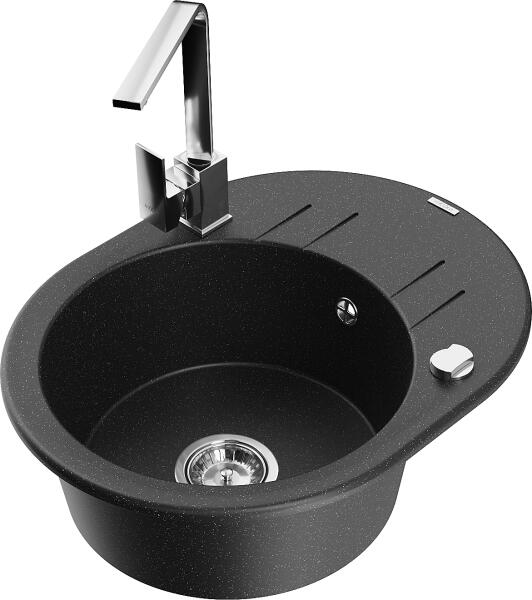 Mexen Diego konyhai mosogató: Gyártó: Mexen Sorozat: Diego Modell: 1 kamrás Beépítés: felülről a munkalapba süllyesztve Méretek: 488x488x167 mm Kamra mélysége: 157 mm Kamra átmérője: 406 mm Lefolyó átmérője: 90 mm Szifon + automatikus leeresztő csavar Anyaga: gránit (80% gránit - kő, 20% gyanta) Sima felület a könnyű tisztítás érdekében: igen Megnövelt ellenállás