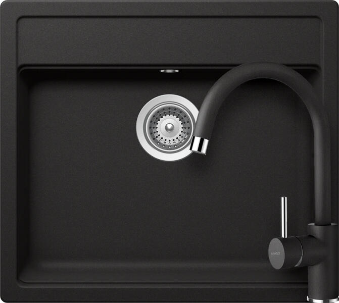 Schock Nemo N-100 konyhai mosogatótálca Cristalite Nero 570 x 510 mm, gránit, hagyományos beépítés, fekete munkalapba beépíthető, egymedencés, csepegtető nélküli, ideálisan illeszkedik a minimum 60 cm-es alsószekrényhez. A csaptelep helye előre elkészített, könnyedén áttörhető. A csomagban találja a használati útmutatót, amely részletes leírást ad a csaptelep helyé