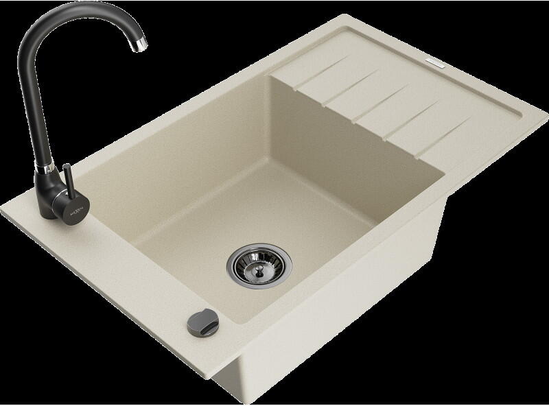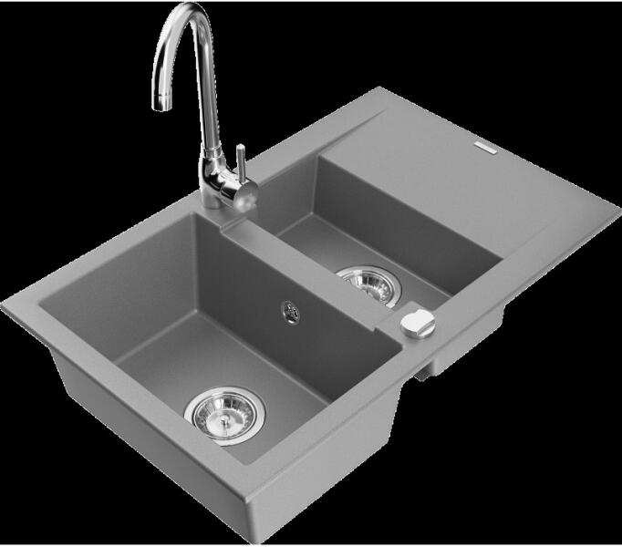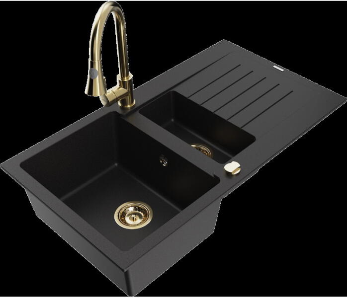 Mexen Enzo konyhai mosogató: Gyártó: Mexen Sorozat: Enzo Modell: 1 kamrás Beépítés: felülről a munkalapba süllyesztve Méretek: 576x465x174 mm Kamra mélysége: 164 mm Kamra mérete: 395x320 mm Lefolyó átmérője: 90 mm Szifon + automatikus leeresztő csavar Anyaga: gránit (80% gránit - kő, 20% gyanta) Sima felület a könnyű tisztítás érdekében: igen Megnövelt ellenállás az