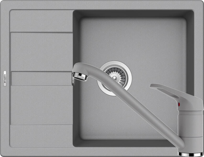 SCHOCK CRISTALITE® Formhaus D-200 mosogatótálca: mosogatótálca: 2 medence + csepptálca felülete kissé érdes, textúrája kőhatású anyag: gránit, 70-75% természetes kvarchomokból pórusmentes ProHygienic 21 eldolgozás megelőzi a foltosodást és a szennyeződések lerakódását élelmiszerbarát ellenáll a mechanikai hatásoknak ellenáll a magas hőmérsékletnek rendkívül id