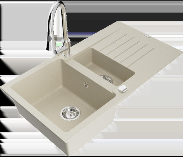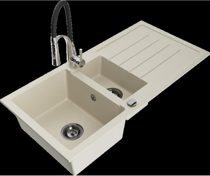 Tomas konyhai mosogató: Gyártó: Mexen Sorozat: Tomas Modell: 2-kamrás csepptálca nélkül Beépítés: felülről a munkalapba süllyesztve Hossz: 800 mm Szélesség: 500 mm Magasság: 190 mm Kamra mélysége: 180 mm (nagyobb), 180 mm (kisebb) Kamra mérete: 440x387 mm (nagyobb), 370x303 mm (kisebb) A lefolyó átmérője: Ø 90 mm Szifon + automatikus leeresztő csavar Anyaga: gránit (80% g