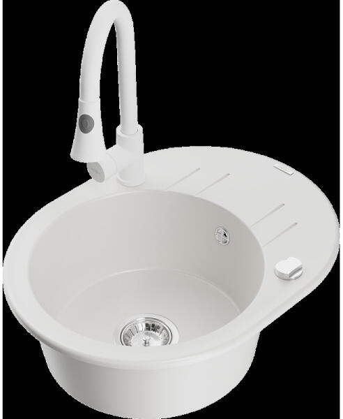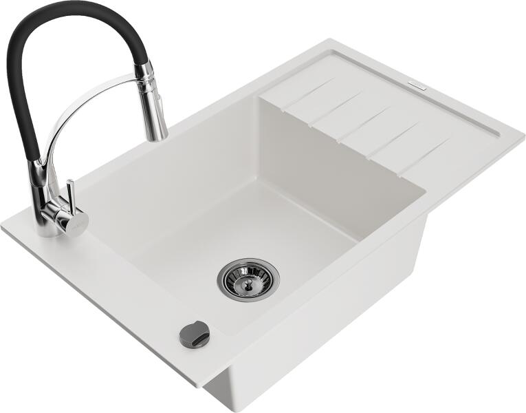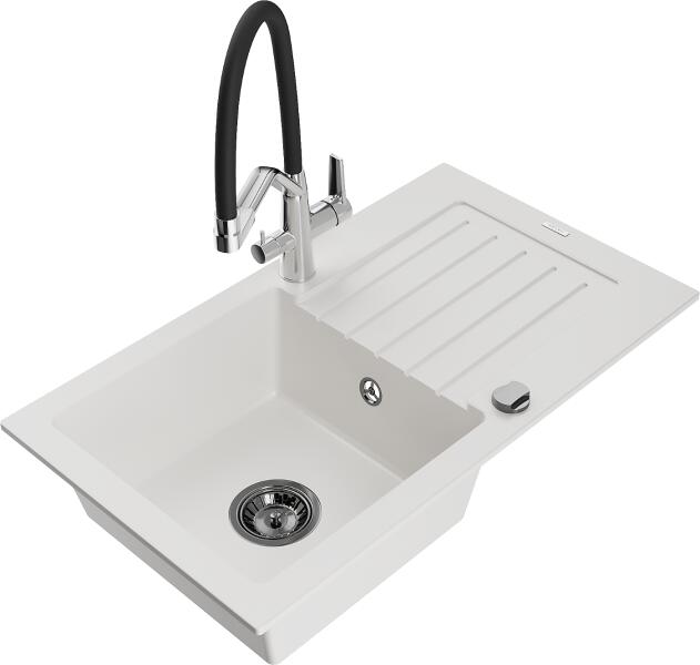 Mexen Elias konyhai mosogató: Gyártó: Mexen Sorozat: Elias Modell: 1 kamrás Beépítés: felülről a munkalapba süllyesztve Méretek: 795x480x200 mm Kamra mélysége: 190 mm Kamra mérete: 465x420 mm Lefolyó átmérője: 90 mm Szifon + automatikus leeresztő csavar Anyaga: gránit (80% gránit - kő, 20% gyanta) Sima felület a könnyű tisztítás érdekében: igen Megnövelt ellenállás