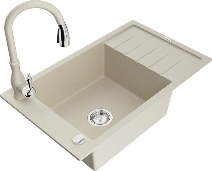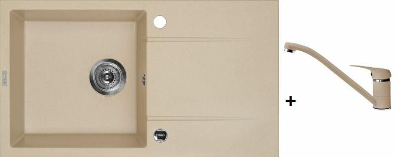Deante Piva Gránit, szögletes mosogató medence 780x440x180mm +csepegtető szifon leeresztővel+standard csapteleppel HOMOK 06ZQI7113+06BEW760M
