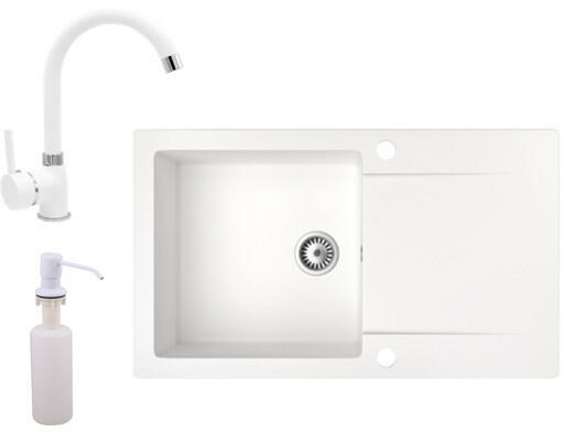 NERO Gold gránit mosogató fehér színben. Praktikus kialakítású egymedencés mosogató, kellő méretű csepegtető résszel. Modern letisztult formájával egy modern konyha tökéletes része lehet. Különlegessége hogy a csepegtető rész nem bordázott, így a minimál stílusú konyhákba is nagyszerű választás. A mosogatón 2 lyuk található ezáltal a mosogató lehet jobb vagy b