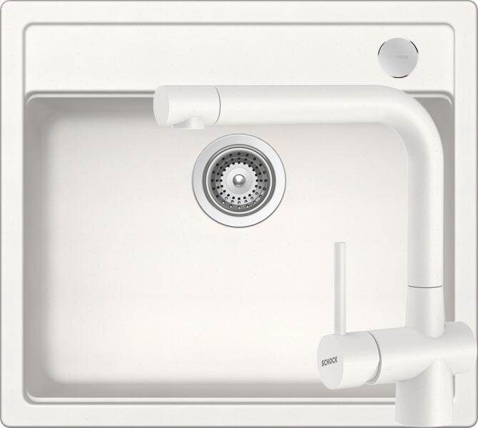 Schock Mono N-100 Gránit Mosogató 570 x 510 mm Puro Cristadur Lefolyó Távműködtetővel munkalapba beépíthető, egymedencés, csepegtető nélküli, ideálisan illeszkedik a minimum 60 cm-es alsószekrényhez. A csaptelep helye előre elkészített, könnyedén áttörhető. A csomagban találja a használati útmutatót, amely részletes leírást ad a csaptelep helyének megfelelő módon
