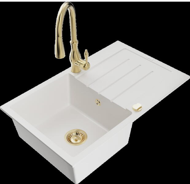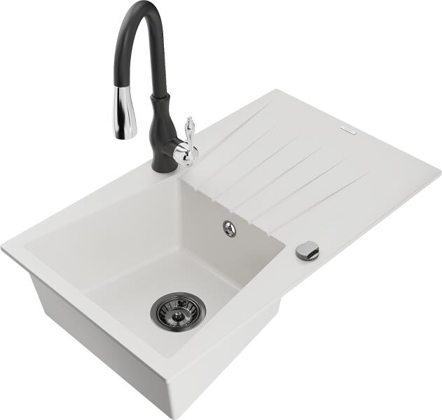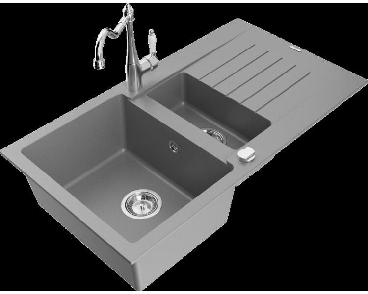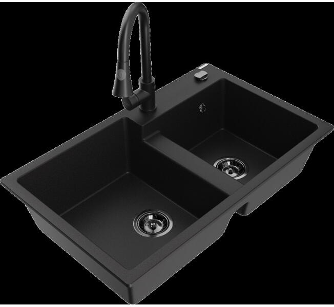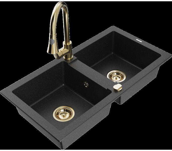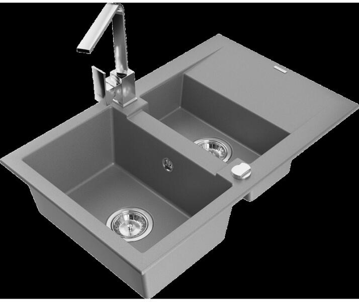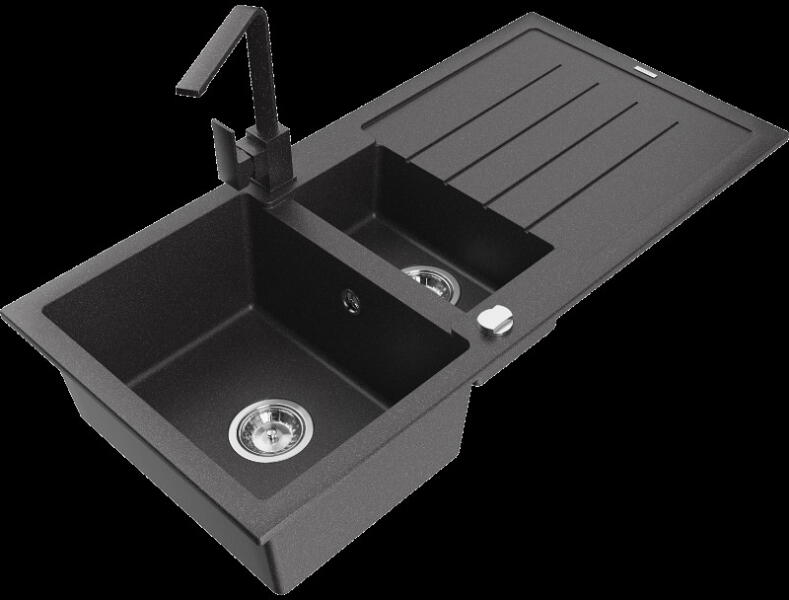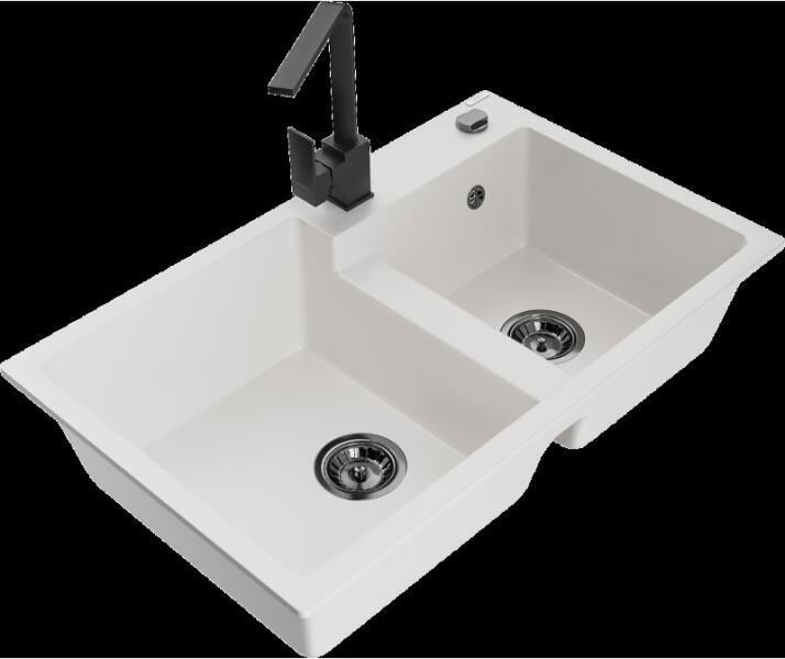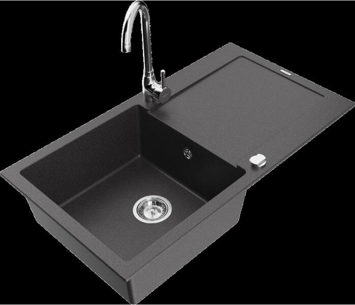 Gyártó: Mexen Sorozat: Cesar + Savita Mosogató: Méretek: 775x470x200 mm Kamra méretei: 410x355 mm Kamra mélysége: 180 mm Lefolyó átmérője: ø90 mm Típus: 1 kamrás lefolyóval Mosogató típusa: a munkalapba való beágyazáshoz Anyaga: gránit (80% gránit adalékanyag 20% gyanta) Túlfolyó nyílás: Igen Lyukak: 2 (1 lyuk a mosogató csaptelepéhez, 1 lyuk az automatikus leeresztőc